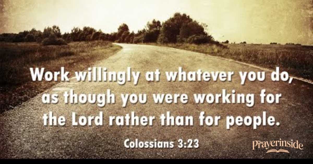 Colossians 3:23 reminds us to work wholeheartedly, doing everything as if serving the Lord rather than people. This verse teaches that our work ethic reflects Christian character, faithfulness, and obedience. Whether in daily work, ministry, or household responsibilities, approaching labor with diligence honors God, strengthens integrity, and transforms ordinary tasks into acts of worship, showing trust in God’s provision